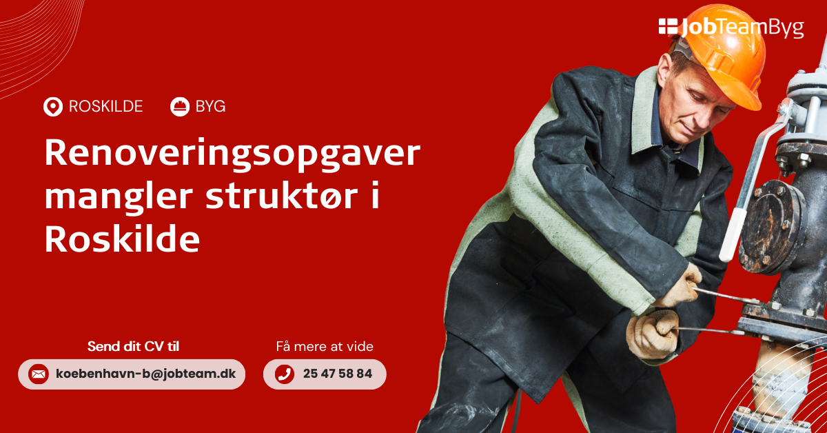 Er dette noget for dig? Send din ansøgning til Jonas Foldager på koebenhavn-b@jobteam.dk eller ring til os på 25475884 for at høre mere om stillingen.