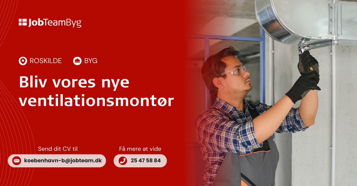Er dette noget for dig? Send din ansøgning til Jonas Foldager på koebenhavn-b@jobteam.dk eller ring til os på 25475884 for at høre mere om stillingen.