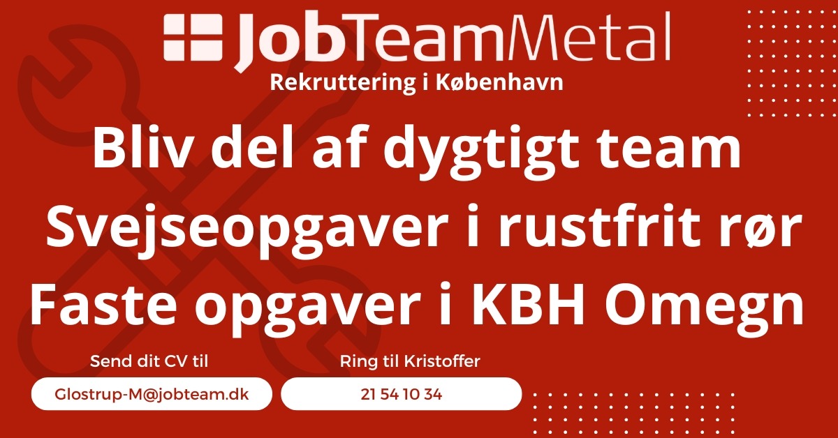 - Kontakt: Send CV (og evt. certifikat) til Glostrup-M@jobteam.dk eller ring på 21541034