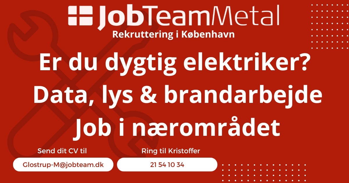 - Kontakt: Send dit CV til Glostrup-m@jobteam.dk eller ring på 21541034