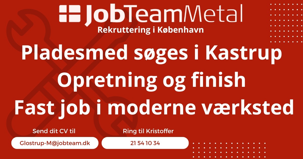 - Send dit CV til Glostrup-M@jobteam.dk (mærk mailen med “Karrosseritekniker – Kastrup”), eller ring til 54551230