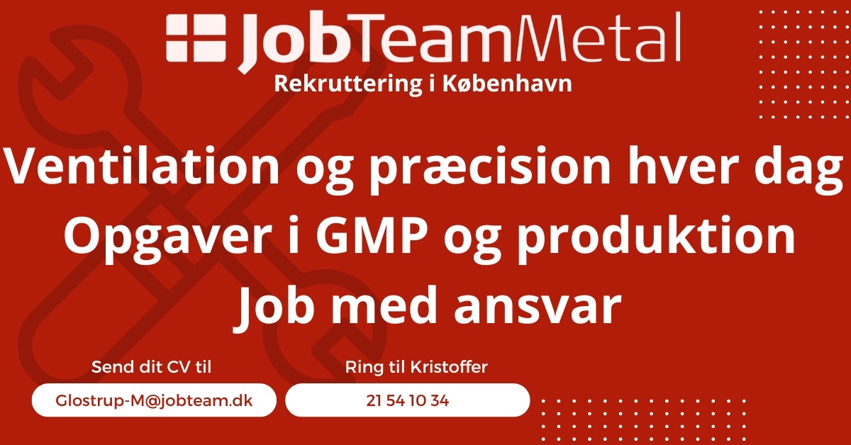 Interesseret? Send dit CV til Glostrup-M@jobteam.dk (mærk “Ventilationstekniker M7”), eller ring til 21541034