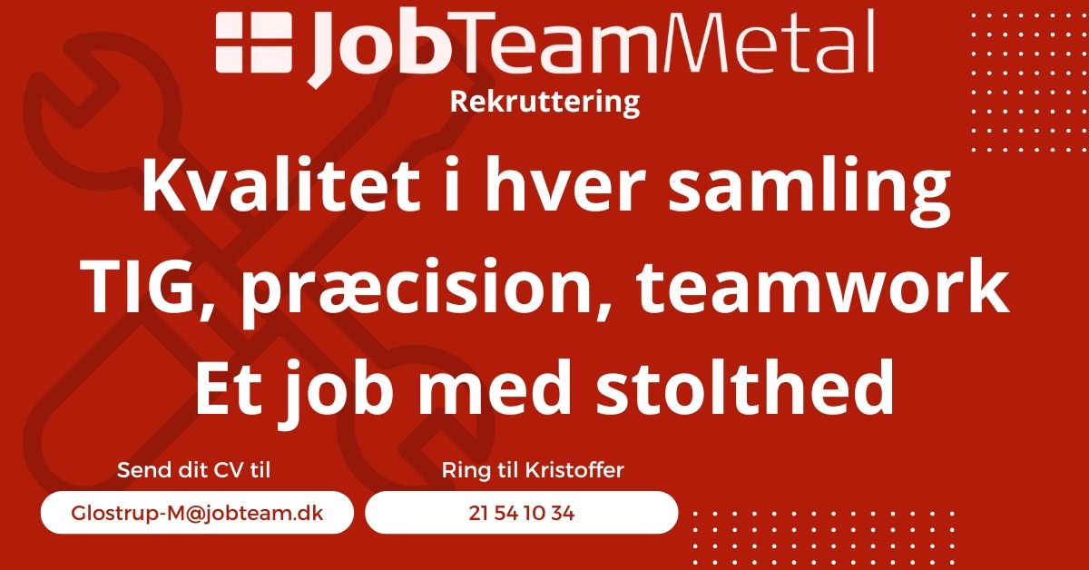 Du kommer til at arbejde med TIG-svejsning, montageforberedelse, måling og tilpasning – og vil være en vigtig del af produktionen, hvor detaljerne tæller.