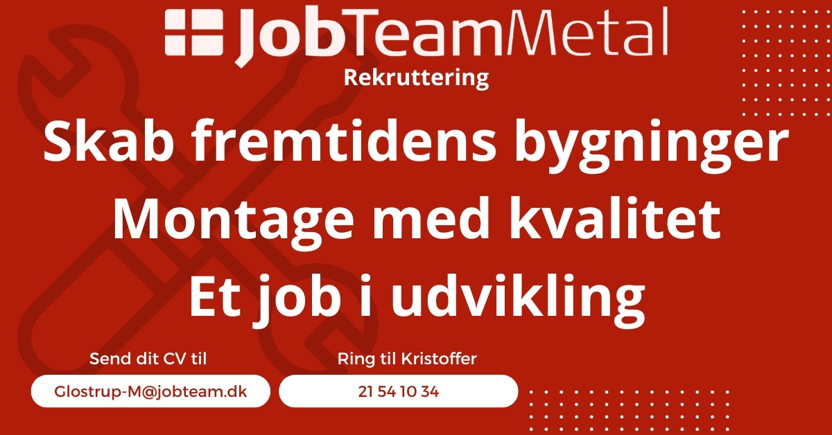 - Send dit CV og en kort motivering til Glostrup-M@jobteam.dk (mærk mailen med “D2” i emnefeltet), eller kontakt os på 21541034 for mere info.