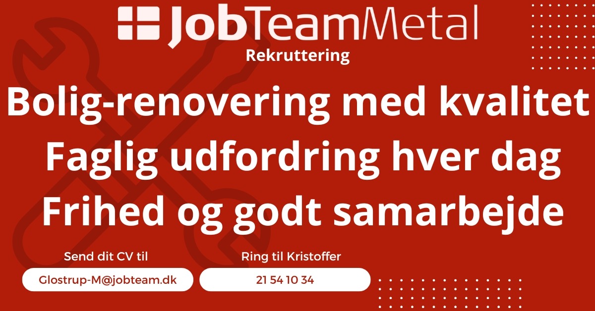 Send dit CV eller en kort præsentation til Glostrup-M@jobteam.dk (skriv “E23”) eller ring til 21541034 for mere info.
