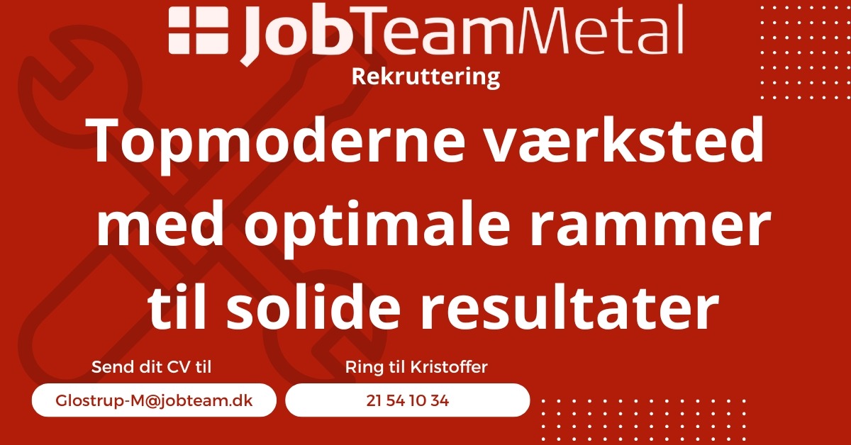 Send dit CV eller en kort ansøgning til Glostrup-M@jobteam.dk (angiv “HK27” i emnefeltet) eller ring på 21541034. Vi afholder samtaler løbende og venter på den rette kandidat.