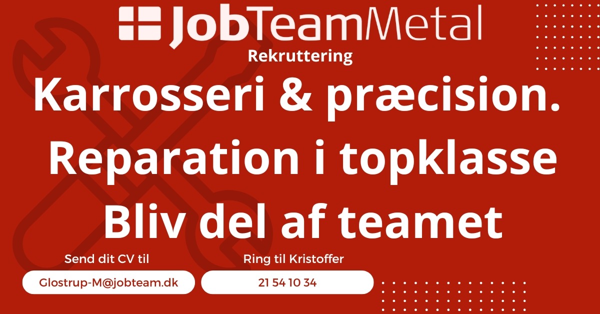 📧 Ansøgning: Send dit CV til Glostrup-M@jobteam.dk (skriv “H18 - Automekaniker”)