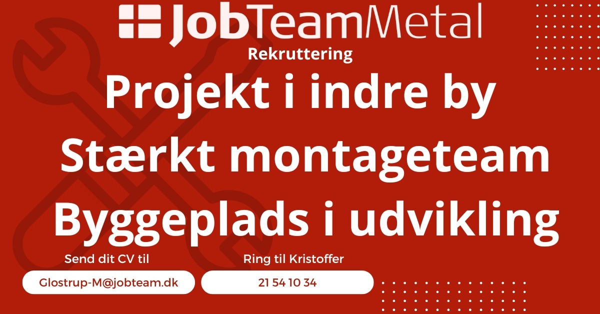 Send dit CV til Glostrup-M@jobteam.dk (skriv “Montage-50” i emnefeltet) eller ring på 21541034