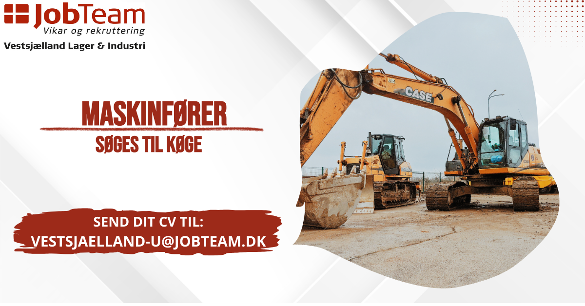 Klar på nye udfordringer? Send din ansøgning allerede i dag vestsjaelland-u@jobteam.dk eller ring til Jan på 54558707 – vi ser frem til at høre fra dig!