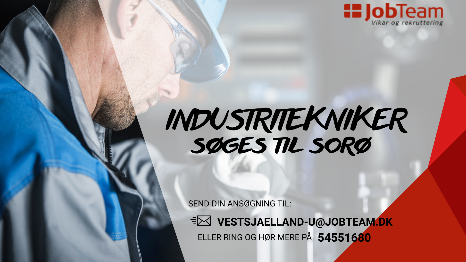 Send din ansøgning og CV til vestsjaelland-u@jobteam.dk. Har du spørgsmål, er du velkommen til at kontakte Kathrine på 54551680.