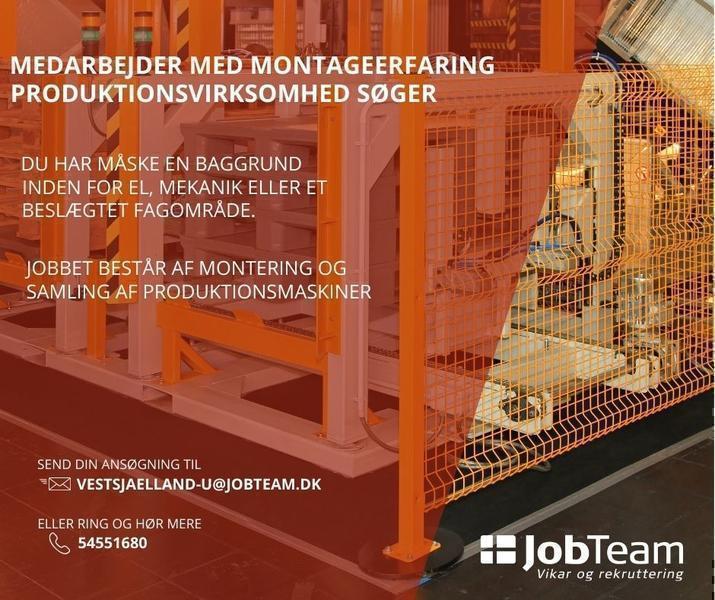 Vi søger en montagemedarbejder til vores samarbejdspartner i Vemmelev - et spændende job med samling og montering af tekniske anlæg. Du kommer til at arbejde med moderne udstyr i en virksomhed med fokus på kvalitet og godt samarbejde.