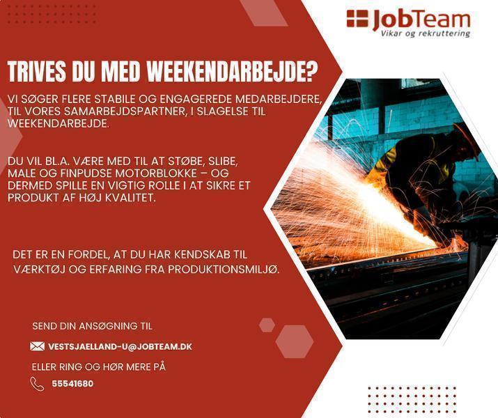 Du bliver en del af et dedikeret team i en moderne produktion, hvor kvalitet, sikkerhed og samarbejde er i højsædet. Stillingen er på weekendhold med faste vagter – perfekt til dig, der ønsker frihed i hverdagene.