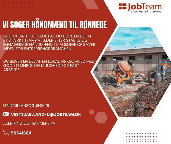 Lyder det som noget for dig? Så send din ansøgning og evt. CV hurtigst muligt til vestsjaelland-u@jobteam.dk. Vi indkalder til samtaler løbende og ansætter, så snart vi har fundet de rette.
