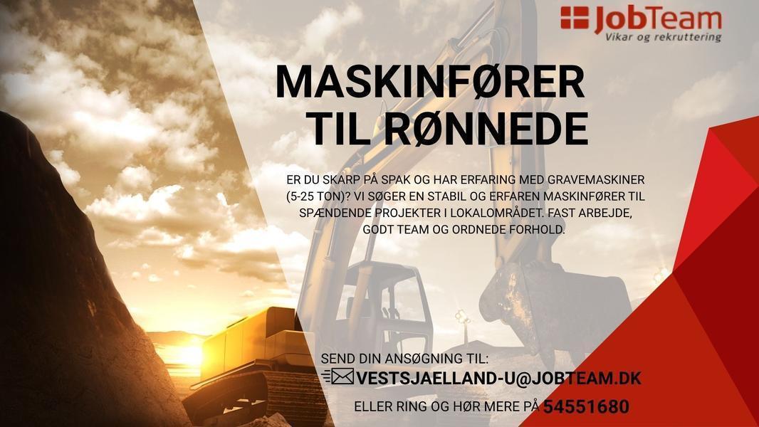 Vi søger en erfaren maskinfører til betjening af gravemaskiner i størrelsen 5-25 ton. Du kommer til at arbejde på spændende projekter inden for jord-, kloak- og belægningsarbejde.