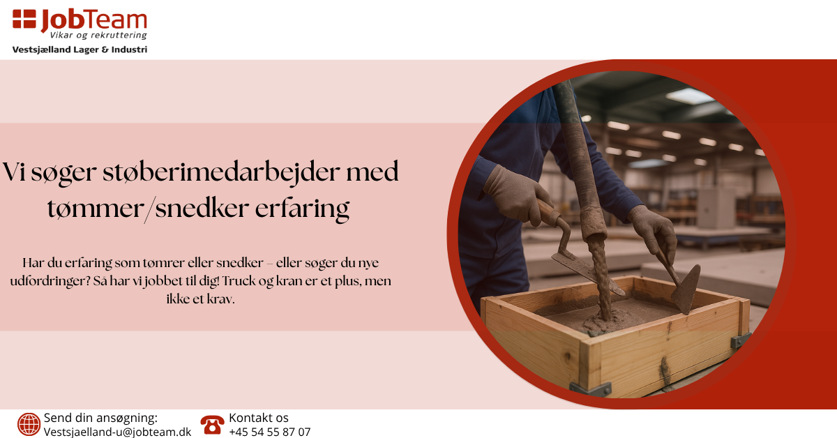 Som medarbejder i produktionen bliver du en del af et professionelt team, hvor du både arbejder med træforme, armering og støbning af beton. Stillingen kræver fysisk arbejde, og du vil få oplæring i de specifikke processer.