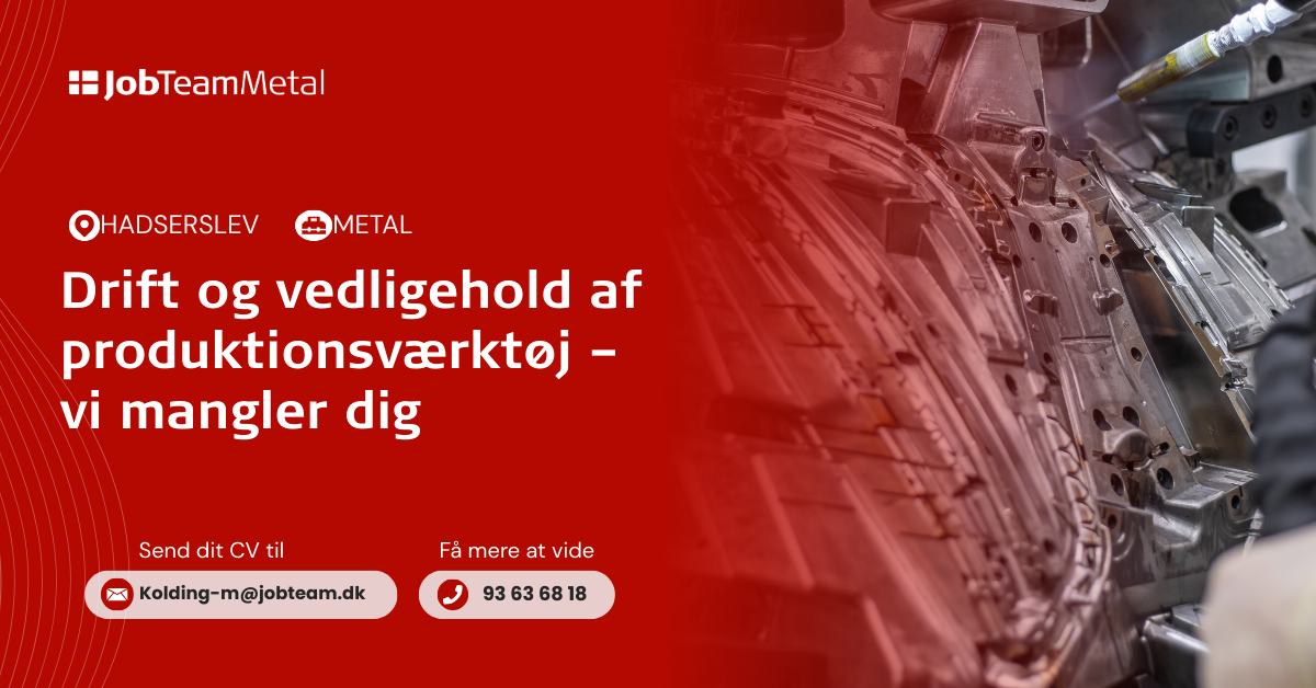 Kontakt os på mail: kolding-m@jobteam.dk, mærket med "Værktøjsmager"
