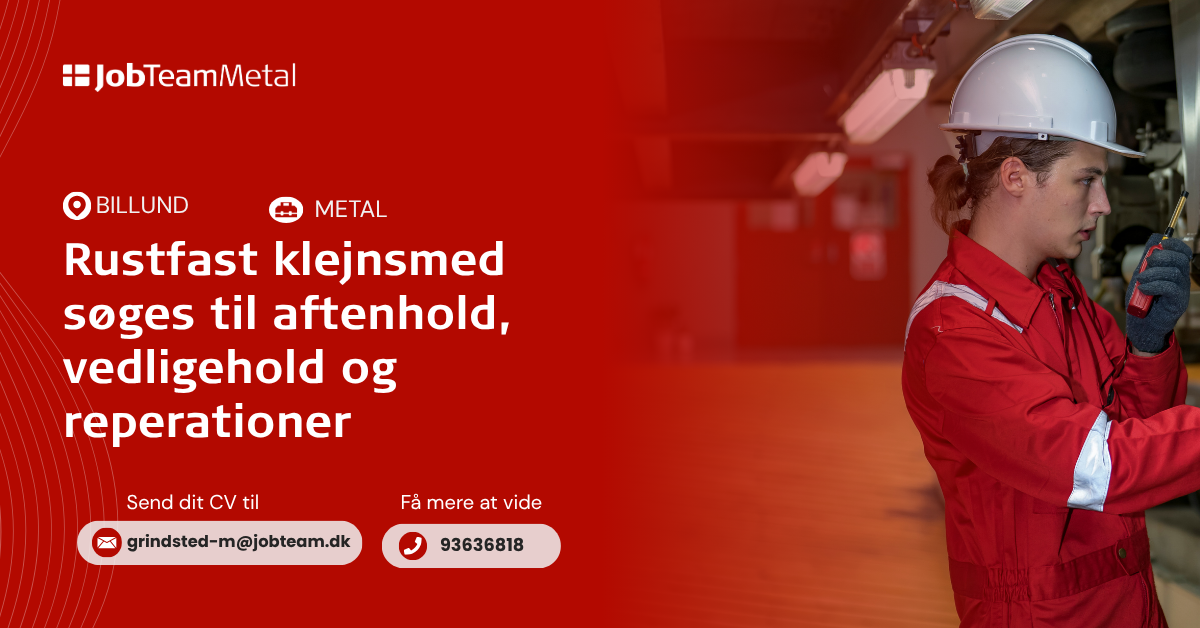 Send dit CV til os på mail: grindsted-m@jobteam.dk mærket "Rustfast klejnsmed"