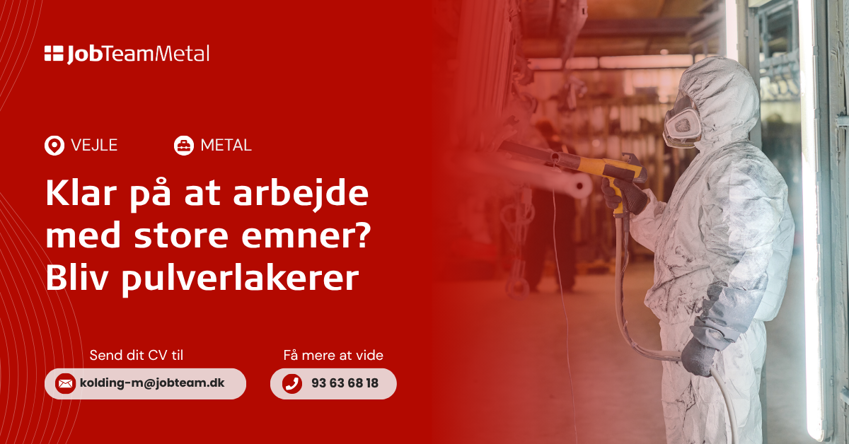 Kontakt os på mail: kolding-m@jobteam.dk, mærket "Pulverlakerer"