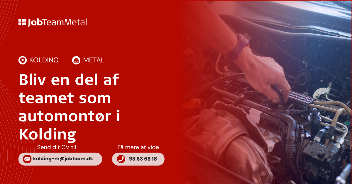 For at komme i betragtning til stillingen sendes CV til Phillip Huynh på kolding-m@jobteam.dk, gerne med stillings ID i emnefeltet.