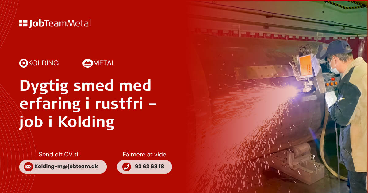 Kontakt os på mail: kolding-m@jobteam.dk , mærket "Rustfast klejnsmed"