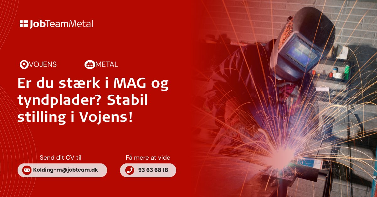 Er det dig vi søger, så skynd dig at sende en mail til kolding-m@jobteam.dk, mærket "MAG-svejser"