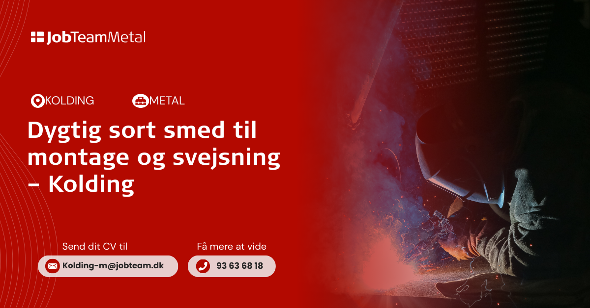 Kontakt os på mail: kolding-m@jobteam.dk , mærket "Sort smed"