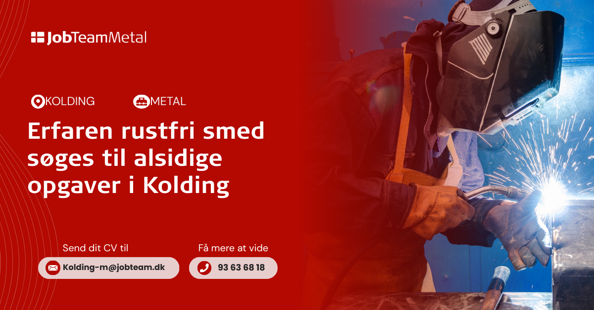 Kontakt os på mail: kolding-m@jobteam.dk , mærket "Rustfast klejnsmed"