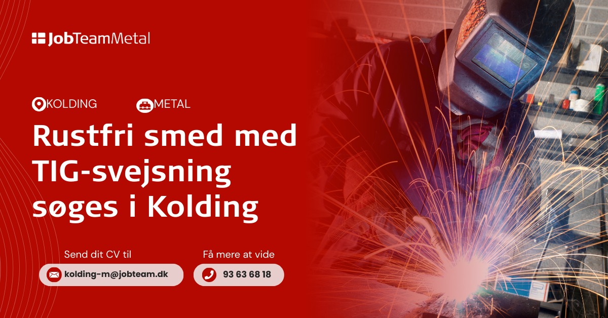 Kontakt os på mail: kolding-m@jobteam.dk , mærket "Rustfast klejnsmed"
