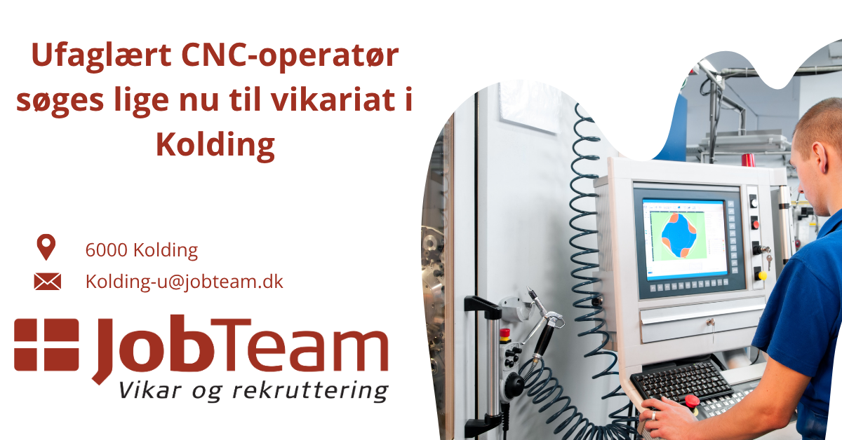 Vi søger en dedikeret og motiveret person til stillingen som ufaglært CNC-operatør i Kolding. Som CNC-operatør er du med til at betjene og overvåge maskiner samt udføre mindre programmeringsopgaver. Der er tale om metalbearbejdning.