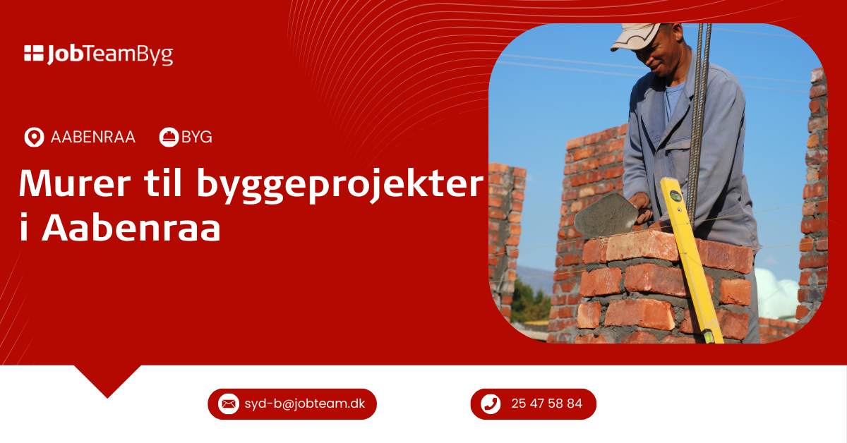 Vi søger en projektmurer til Aabenraa, som kan indgå i et nybyggerteam og levere murerarbejde af høj standard. Du får en varieret hverdag, hvor præcision og samarbejde er centralt.