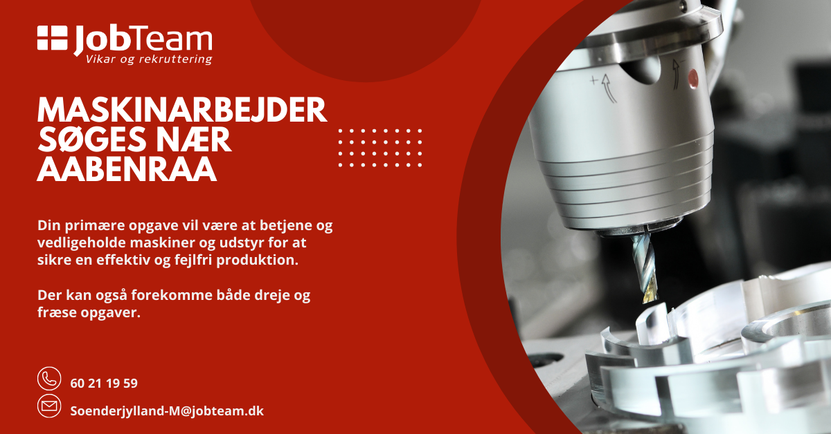 Kontakt os på mail: soenderjylland-m@jobteam.dk, mærket med "Maskinarbejder".