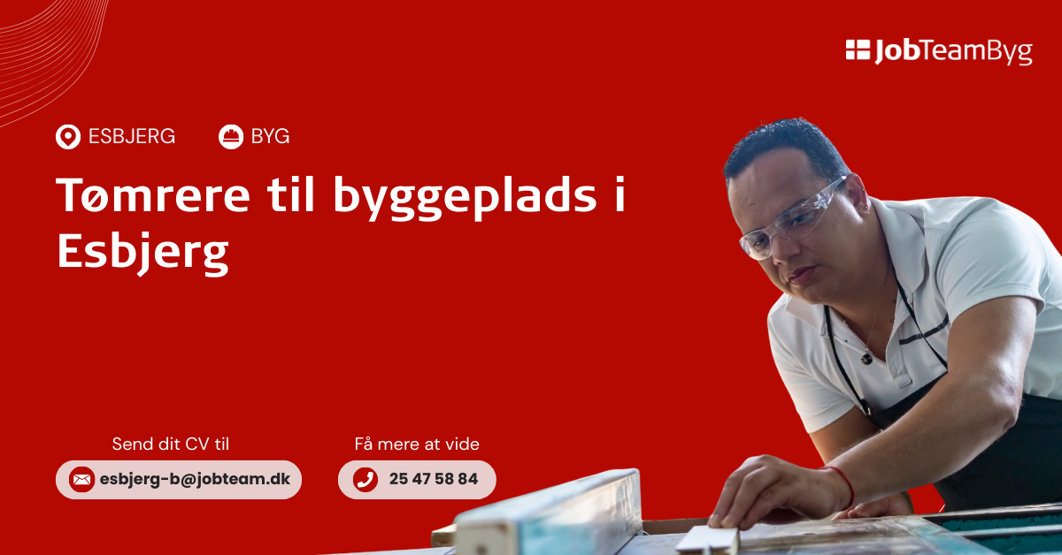 Er dette noget for dig? Send din ansøgning til Jonas Foldager på esbjerg-b@jobteam.dk eller ring til os på 25475884 for at høre mere om stillingen.