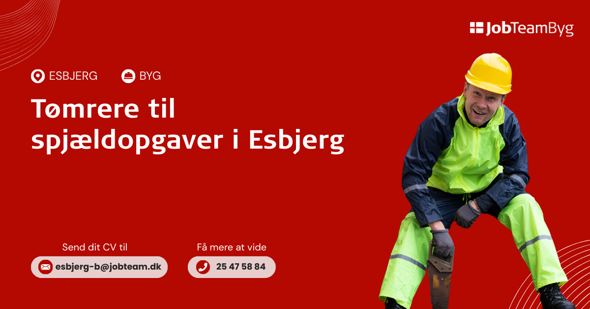 Er dette noget for dig? Send din ansøgning til Jonas Foldager på esbjerg-b@jobteam.dk eller ring til os på 25475884 for at høre mere om stillingen.