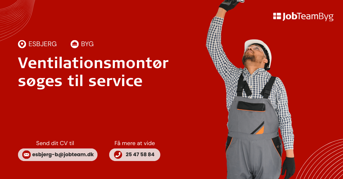 Er dette noget for dig? Send din ansøgning til Jonas Foldager på esbjerg-b@jobteam.dk eller ring til os på 25475884 for at høre mere om stillingen.