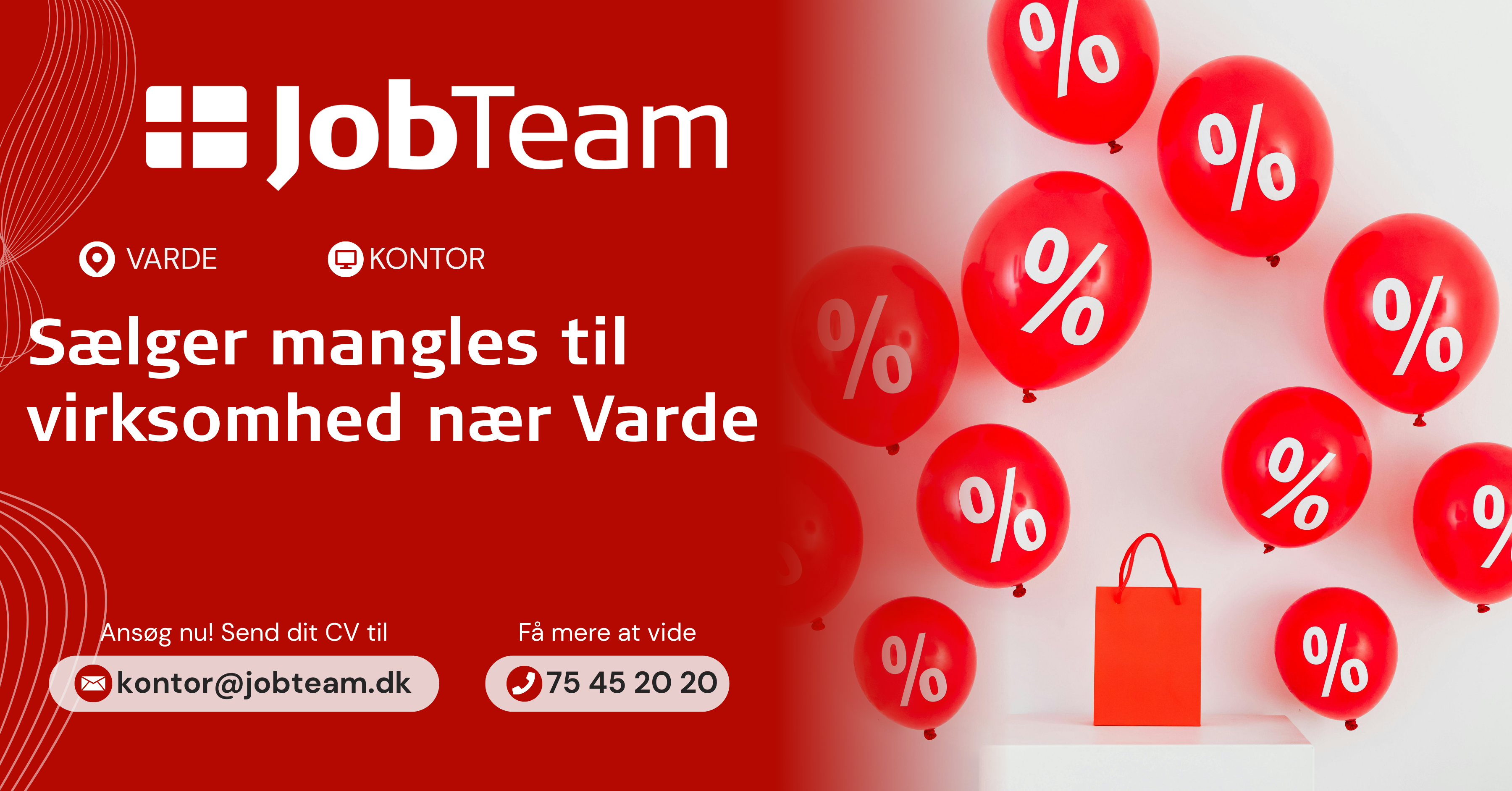 Ved interesse i stillingen bedes du kontakte JobTeam gennem mail kontor@jobteam.dk mærket "KHA-SV-U3".