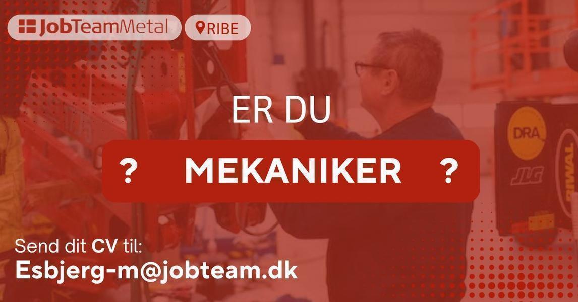 Kontakt os på mail: esbjerg-m@jobteam.dk, mærket med "Mekaniker Ribe".