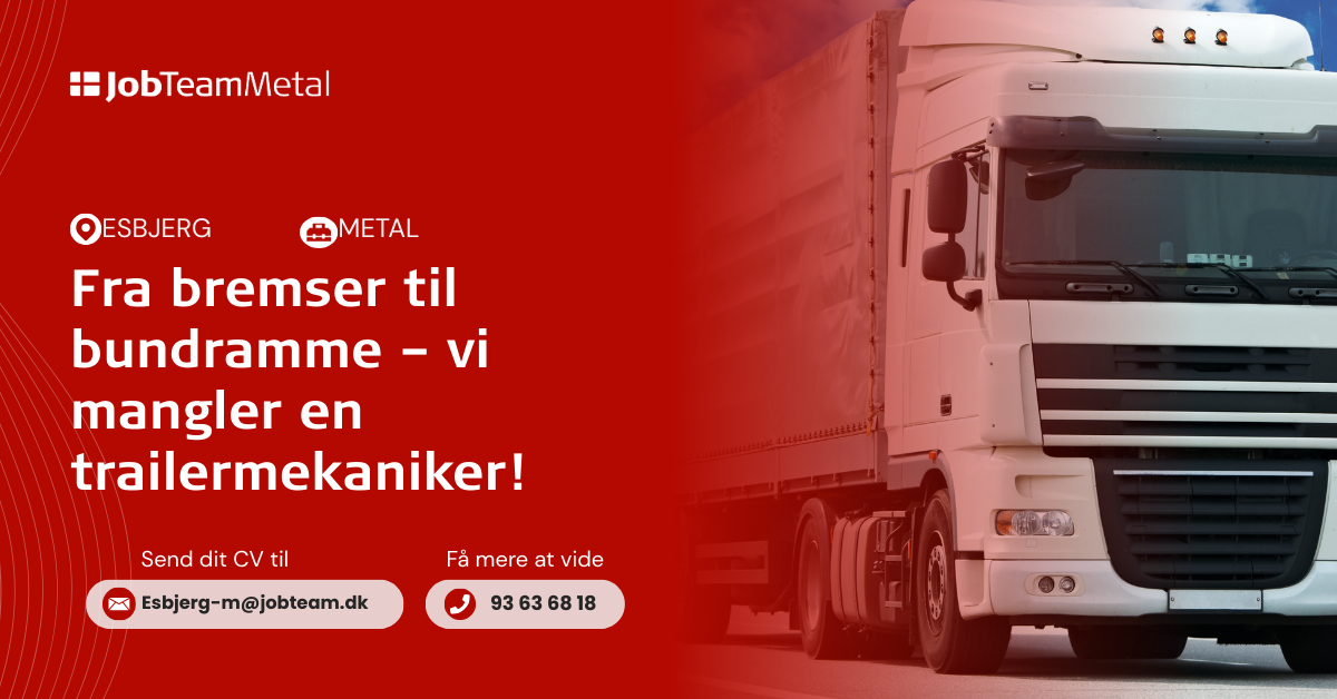 Kontakt os på mail: esbjerg-m@jobteam.dk, mærket "Trailermekaniker"