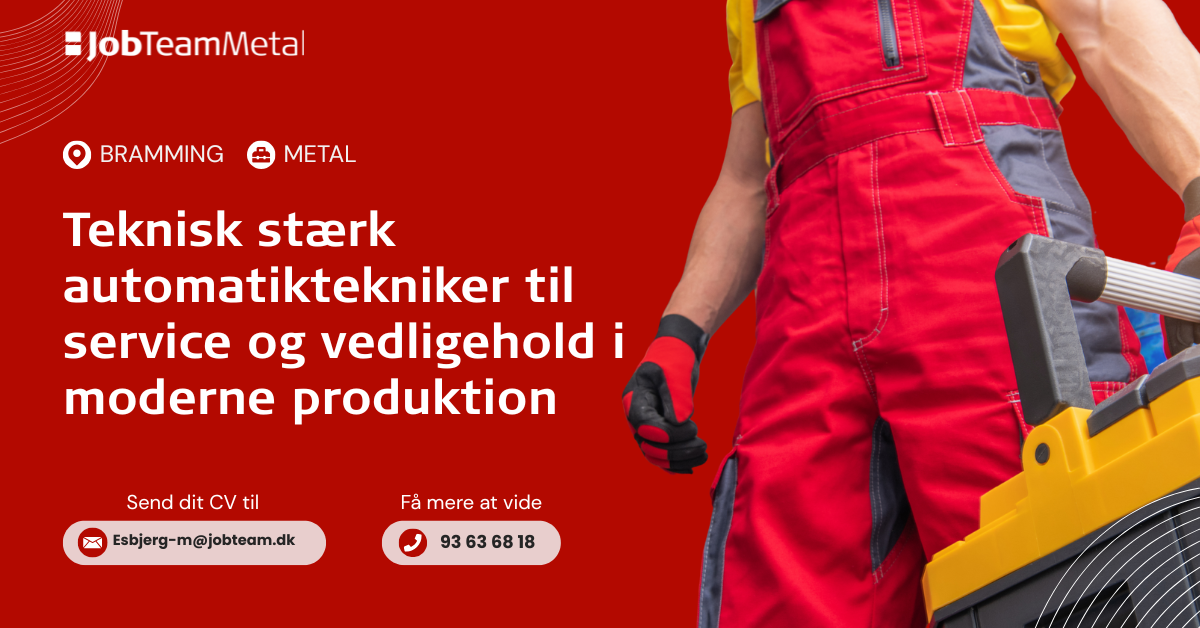 Kontakt os på mail: esbjerg-m@jobteam.dk , mærket "Automatiktekniker".!