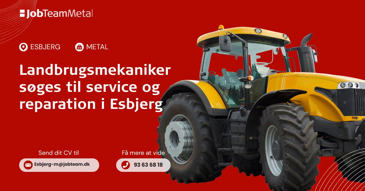 Kontakt os på mail: esbjerg-m@jobteam.dk, mærket med "Landbrugsmaskinmekaniker"
