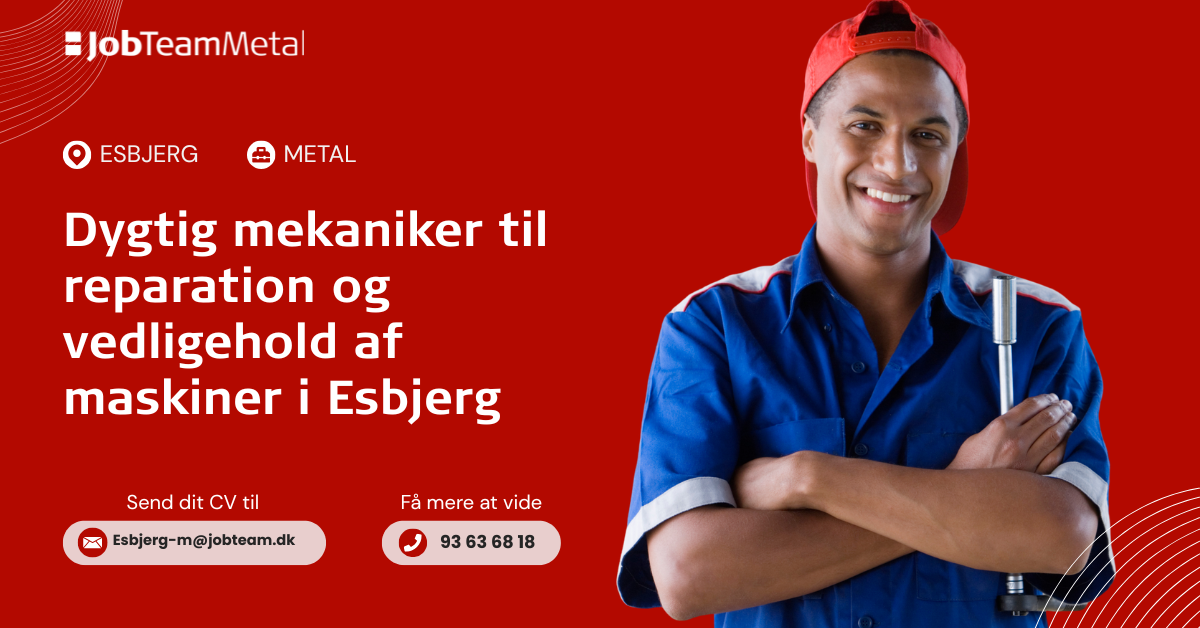 Så kontakt os på mail: esbjerg-m@jobteam.dk, mærket med "Mekaniker Esbjerg".
