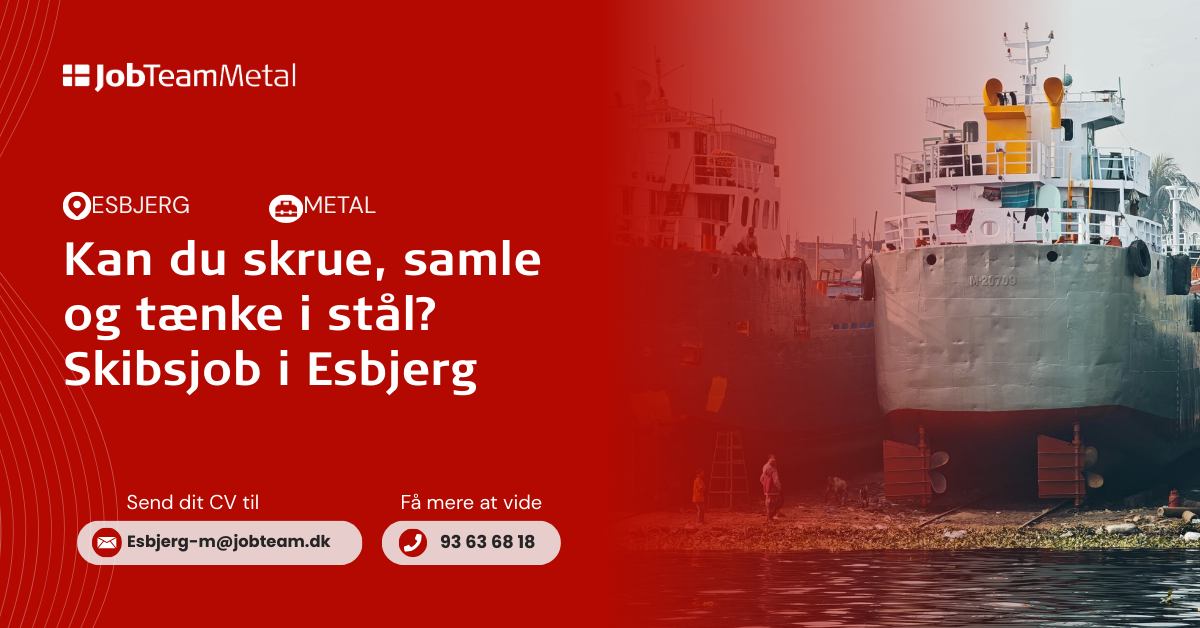 For at komme i betragtning til stillingen sendes CV til Phillip Huynh på Esbjerg-m@jobteam.dk, gerne med stillings ID i emnefeltet.