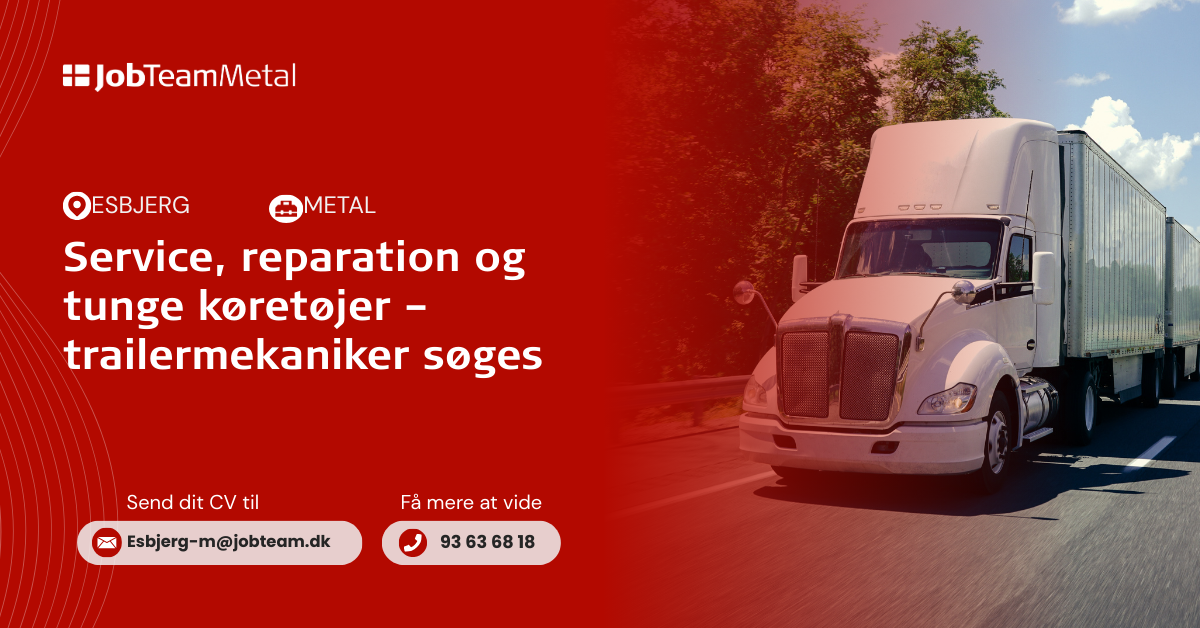 Kontakt os på mail: Esbjerg-m@jobteam.dk, mærket "Trailermekaniker"