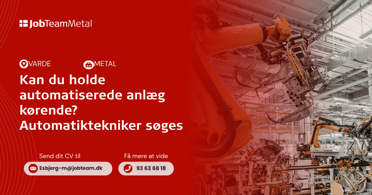 Ansøg ved at sende dit CV på mail til: Esbjerg-m@jobteam.dk - gerne mærket med "Automatiktekniker"