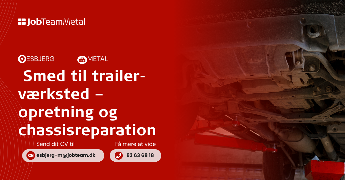 Er du sort smed og leder du efter et arbejde med varierende opgaver på et specialiseret trailer-værksted? Så er det her, du skal søge – for vores samarbejdspartner i Esbjerg søger lige nu en dygtig smed til deres værksted.
