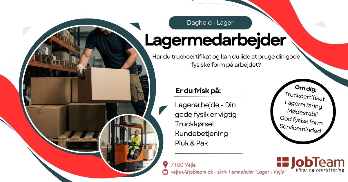 Vi søger en energisk og selvkørende lagermedarbejder til en spændende stilling i en mindre virksomhed. Du bliver en del af et team, hvor vi vægter fællesskab og godt humør højt, og hvor din indsats gør en direkte forskel i dagligdagen.