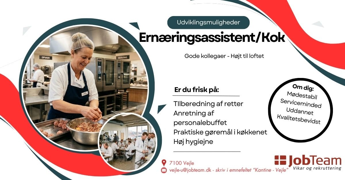 Ernæringsassistent/Kok søges i Vejle til kantine
