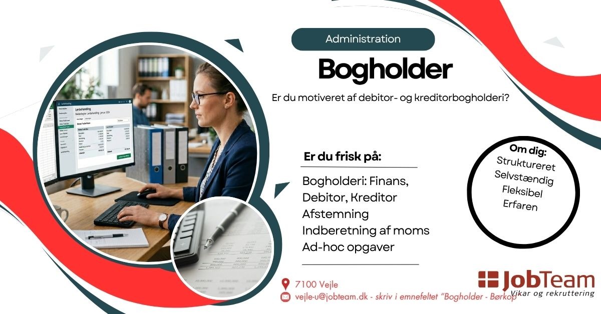 Ansøgning: Send dit CV og en motiveret ansøgning til vejle-u@jobteam.dk. Vi behandler ansøgninger løbende og lukker processen, når den rette kandidat er fundet. Vi ønsker tiltrædelse hurtigst muligt.