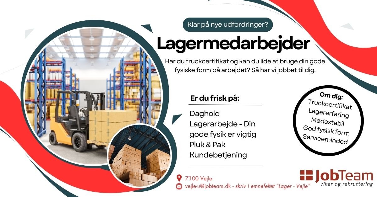 Elsker du en aktiv hverdag, hvor du får brugt din energi og kan se konkrete resultater af dit arbejde? Vi søger en lagermedarbejder, der trives med højt tempo og har lyst til at tage fat i en kultur, hvor vi løfter i flok og har det sjovt, mens vi har fart på.