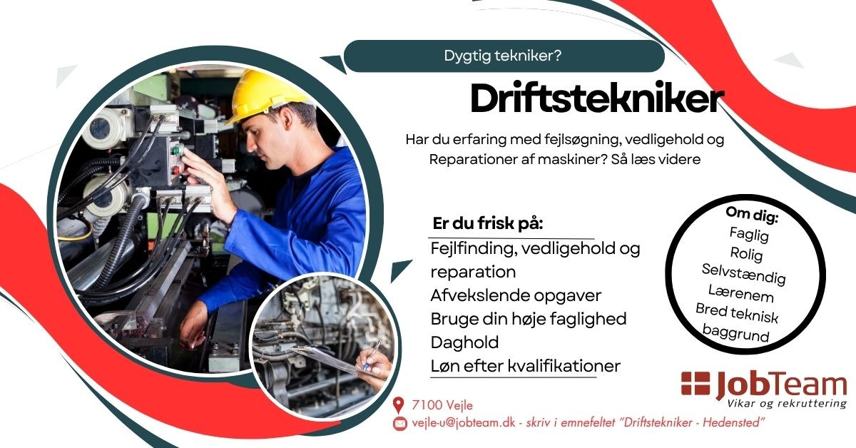 Lyder det spændende? Så send din ansøgning til os på vejle-u@jobteam.dk . Har du spørgsmål kan du ringe på tlf 55667344