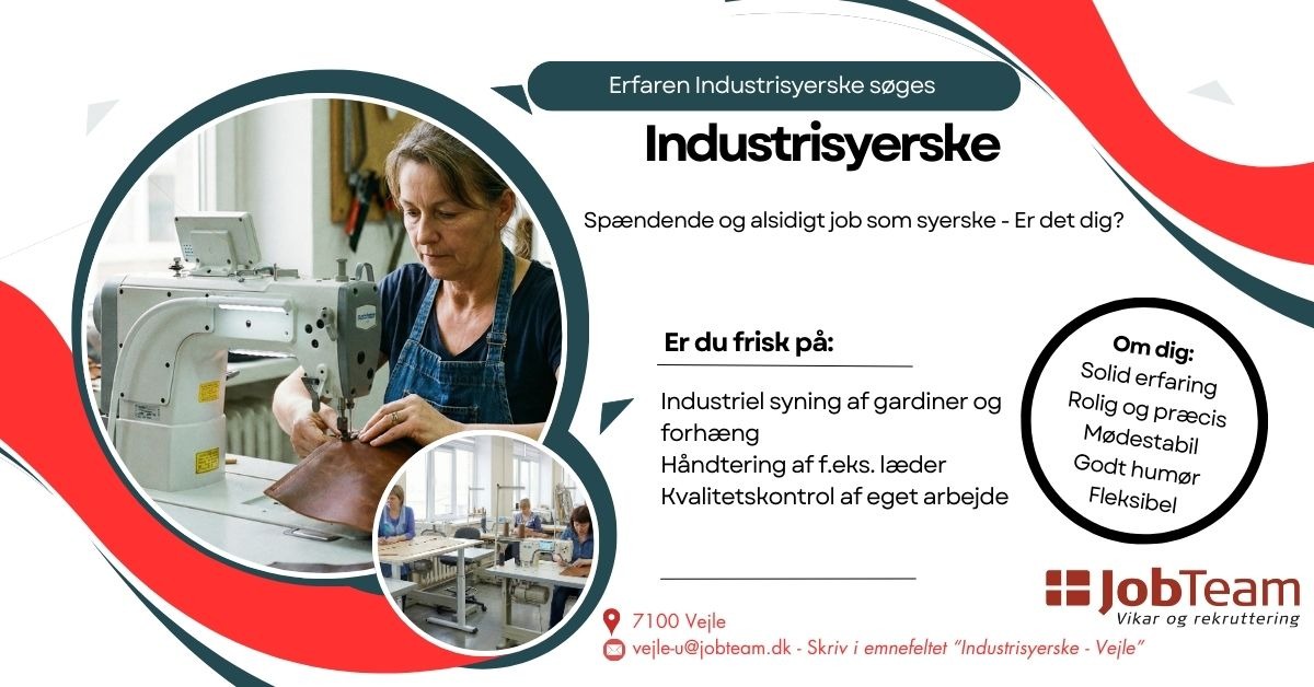 Vores kunde er en veletableret virksomhed i Vejle, der specialiserer sig i skræddersyede interiørløsninger. Vi kigger ind i en dejlig travl periode med fyldte ordrebøger, og derfor har vi brug for dig, der kan dit kram ved en industrisymaskine.